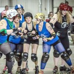 Holly (Dodge) Ahlbrecht is on the flat track with her roller derby 'sisters'