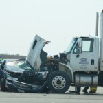 Passenger in car has non-life-threatening injuries, truck driver uninjured